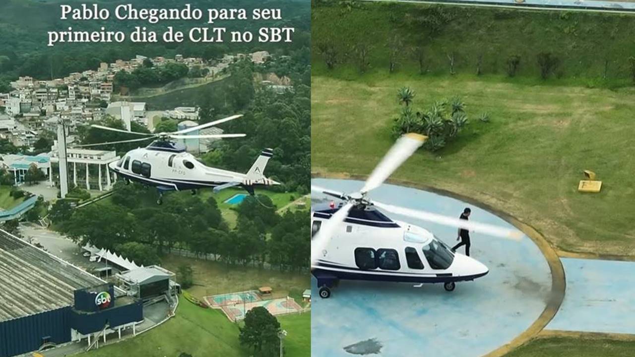 Vida de CLT! Pablo Marçal chega de helicóptero no SBT