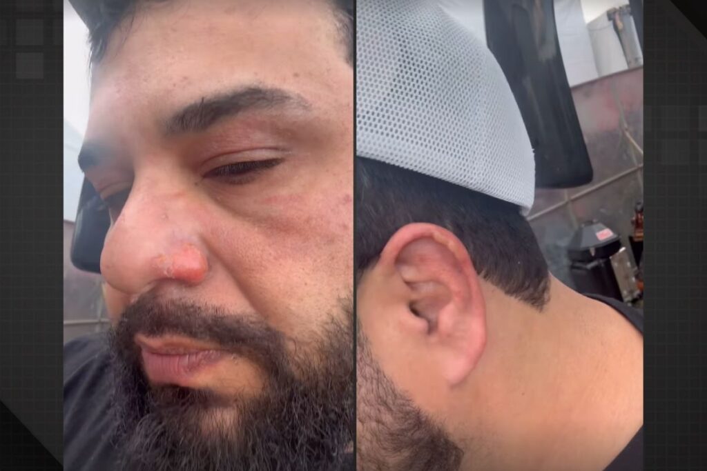 Durante uma apresentação em Pontal, no interior de São Paulo, o cantor Léo, da dupla sertaneja Léo & Raphael, passou por um susto ao ser atingido por chamas no rosto. Apesar das queimaduras, o artista divulgou as imagens do incidente em suas redes sociais.