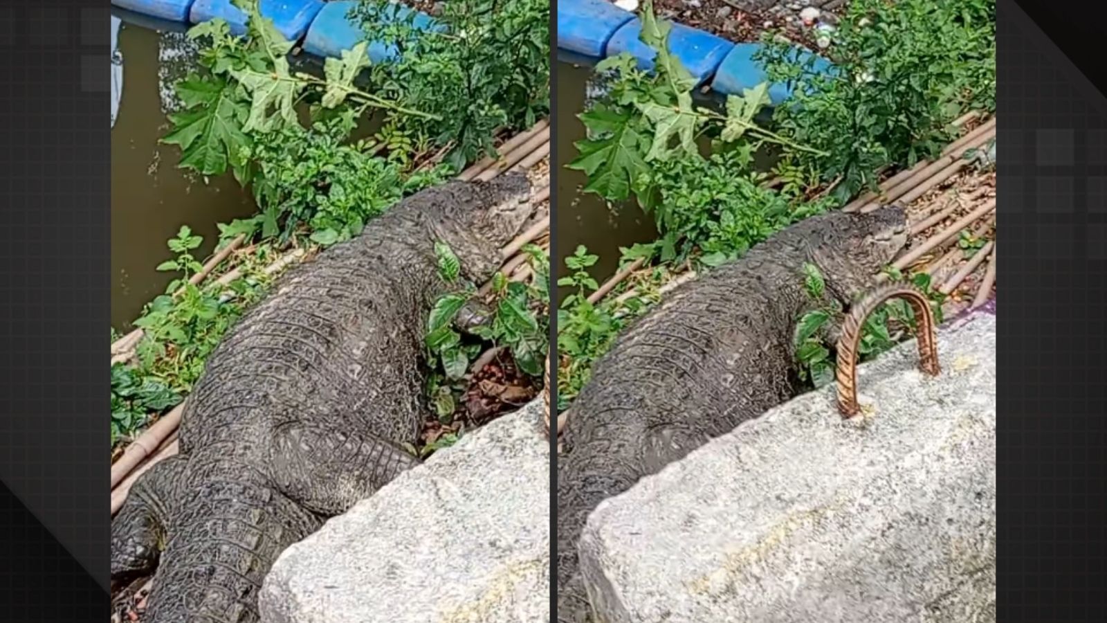 Vídeo: encanador encontra jacaré gigante sobre cano no Recreio dos Bandeirantes