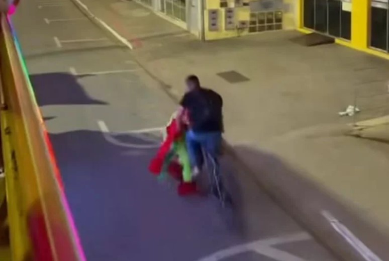 Nas imagens que circulam nas redes sociais, é possível ver o momento em que o personagem Fofão caminha pela marquise, pula fazendo um mortal e, ao chegar no chão, é atropelado por um ciclista que passava pela Avenida Venâncio Flores.