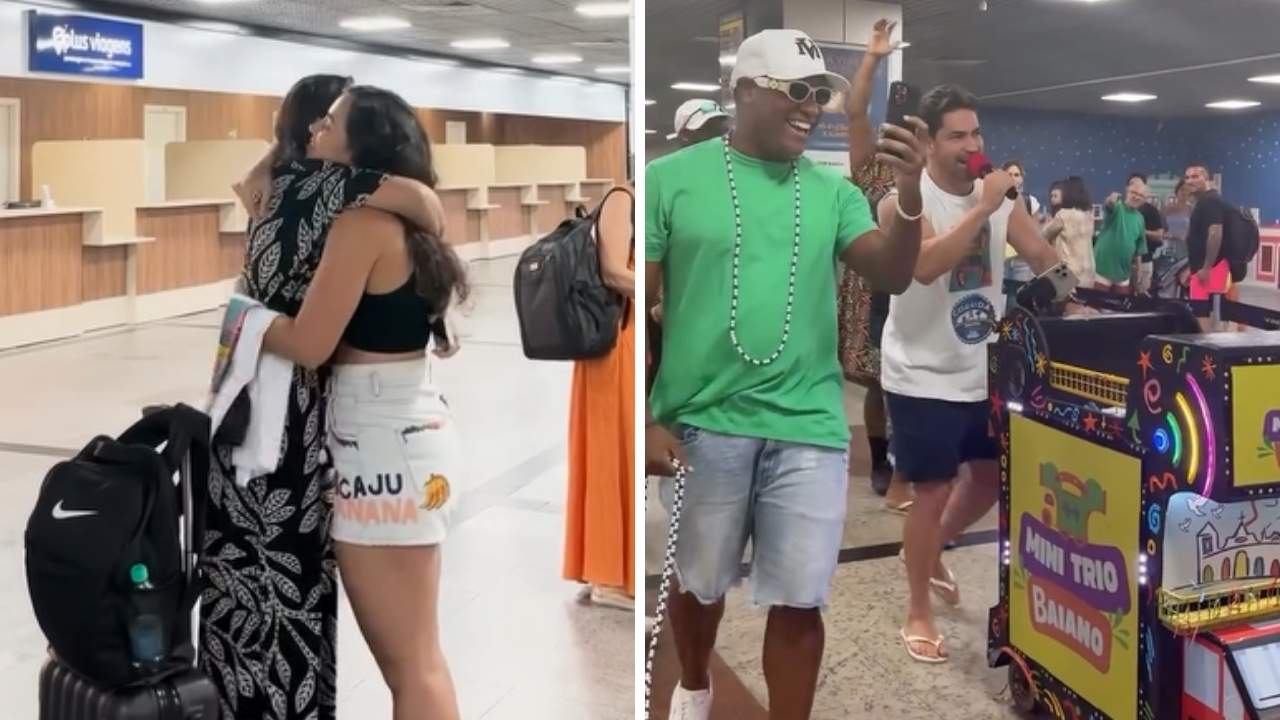 Com limousine, carro de som e sósias, influenciador surpreende a sogra em recepção animada no aeroporto de Salvador