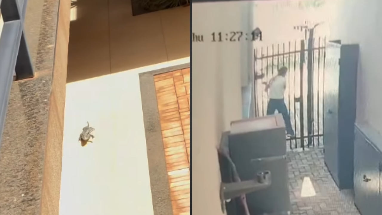 Vídeo: lagarto persegue estudante, escala portão e cena inusitada diverte a web
