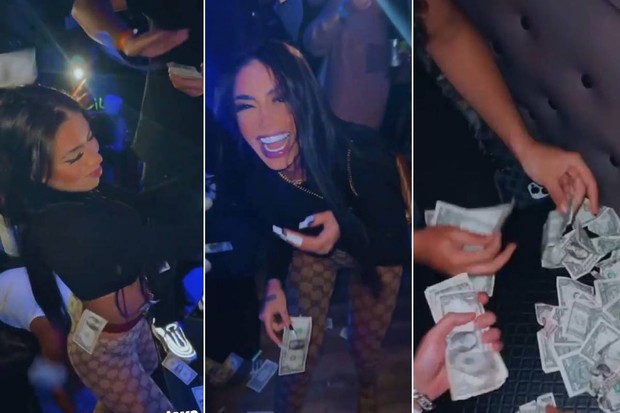 Enquanto a funkeira mostrava habilidade na dança em uma balada nos Estados Unidos, foi surpreendida com uma chuva de dólar