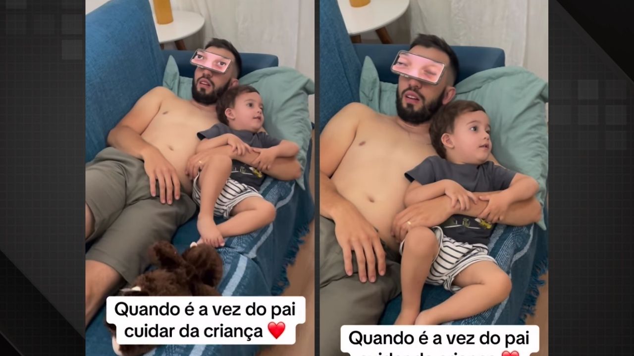 Um vídeo mostrando a tática peculiar de um pai para driblar o cansaço enquanto cuidava do filho, Pietro, rapidamente viralizou nas redes sociais. A gravação, divulgada pela própria mãe da criança, capturou a atenção de milhares de internautas.