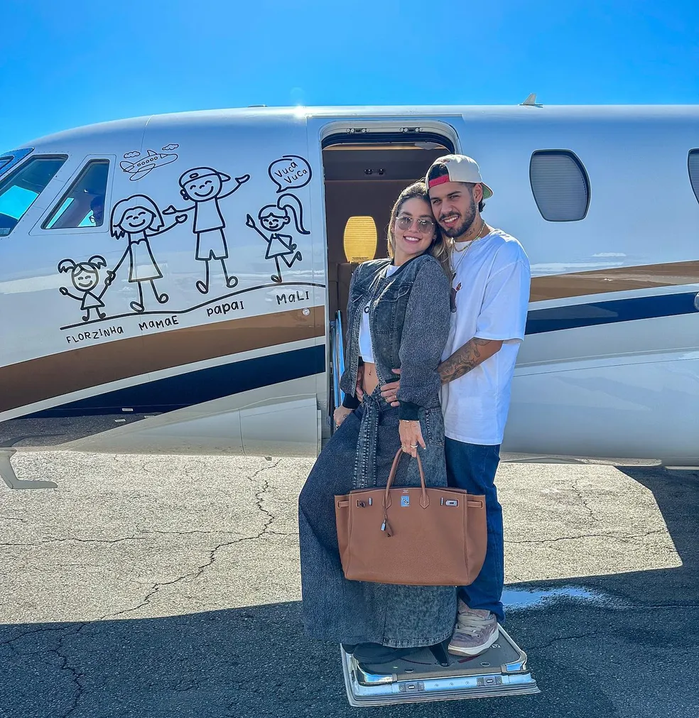 Virginia Fonseca contou aos fãs no Instagram que fará uma viagem a sós Zé Felipe e publicou duas fotos em que aparece embarcando no jatinho particular do casal avaliado em R$ 50 milhões, mas ainda não divulgou o destino.
