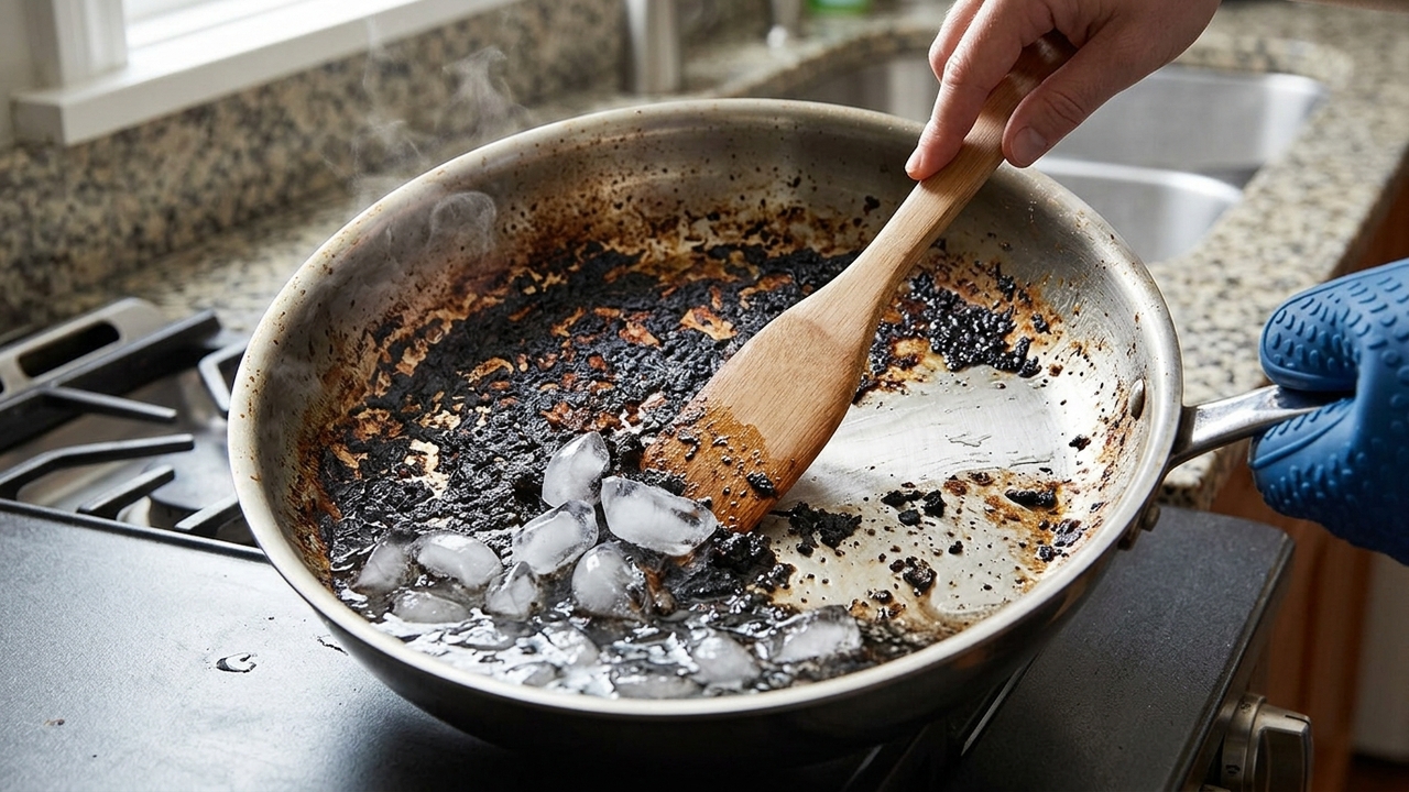 Como limpar panela queimada com gelo passo a passo?
