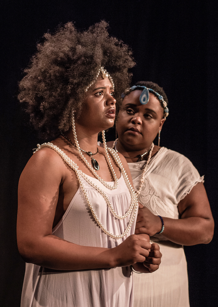 A construção dramatúrgica demonstra em fatos que, independente da classe social ou idade, a vida de qualquer mulher negra é composta por muitos pontos de intercessão. A encenação propõe concretamente o movimento de circularização do tempo, a performatividade das manifestações de matriz africana e suas ressignificações na diáspora que constroem o corpo cênico, tornando menos perceptivo o trânsito entre o “real” e o “ritual”.