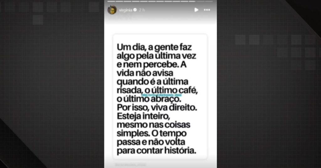 Poucas horas depois, Virginia publicou uma mensagem reflexiva em seu Instagram, interpretada por muitos como uma reação à atitude do ex-marido.