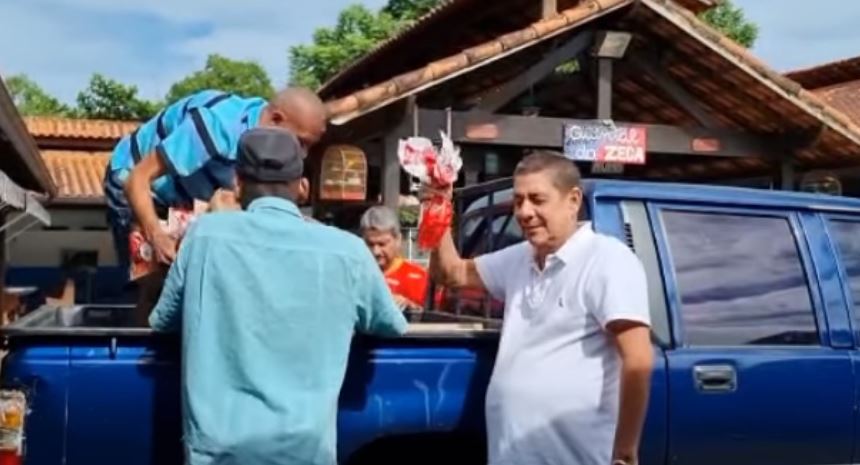Zeca Pagodinho entrega ovos de páscoa a crianças de Xerém