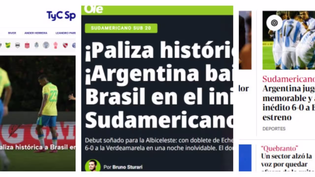 A estreia do Sul-Americano Sub-20 nesta sexta-feira (24) ficou marcada por uma avassaladora vitória da Argentina sobre o Brasil. A partida, realizada no Estádio Misael Delgado em Valencia, Venezuela, terminou com o placar de 6 a 0 a favor da equipe argentina. Este resultado histórico causou grande repercussão na imprensa argentina, que celebrou amplamente o feito da seleção albiceleste.