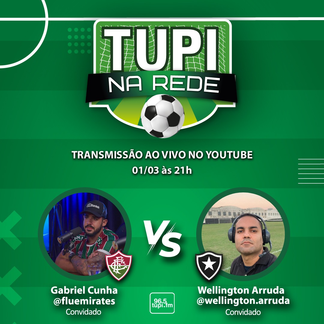 O Tupi na Rede desta sexta-feira (01) tem convidados especiais para falar do clássico Fluminense x Botafogo do próximo domingo (03). Wellington Arruda e Fluemirates representam seus times no debate que discute o clássico que acontece no Maracanã, às 16h.