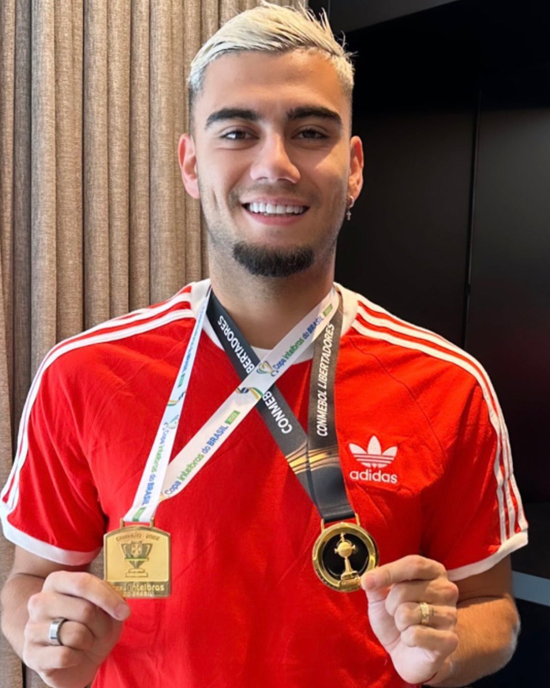 O meia Andreas Pereira recebeu as medalhas das conquistas da Copa do Brasil e da Libertadores. Apesar de deixar o clube no meio da temporada, o atleta participou das campanhas nos dois torneios e contribuiu, inclusive, com gol importante nas oitavas de final da competição da Conmebol.
