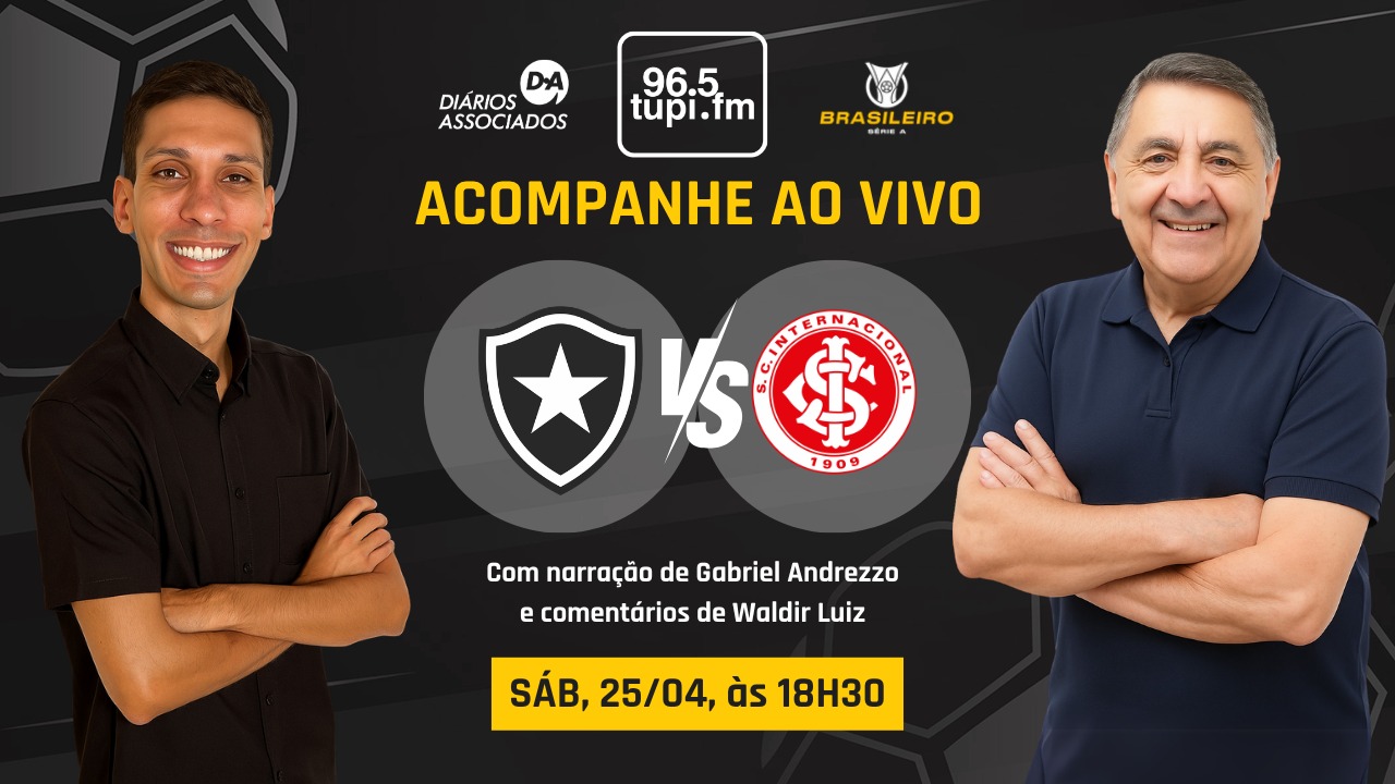 ão perca nenhum detalhe de Botafogo x Internacional ao vivo na transmissão completa da Super Rádio Tupi. A cobertura acompanha todos os lances direto do Nilton Santos. A narração será de Gabriel Andrezo e os comentários de Waldir Luiz.