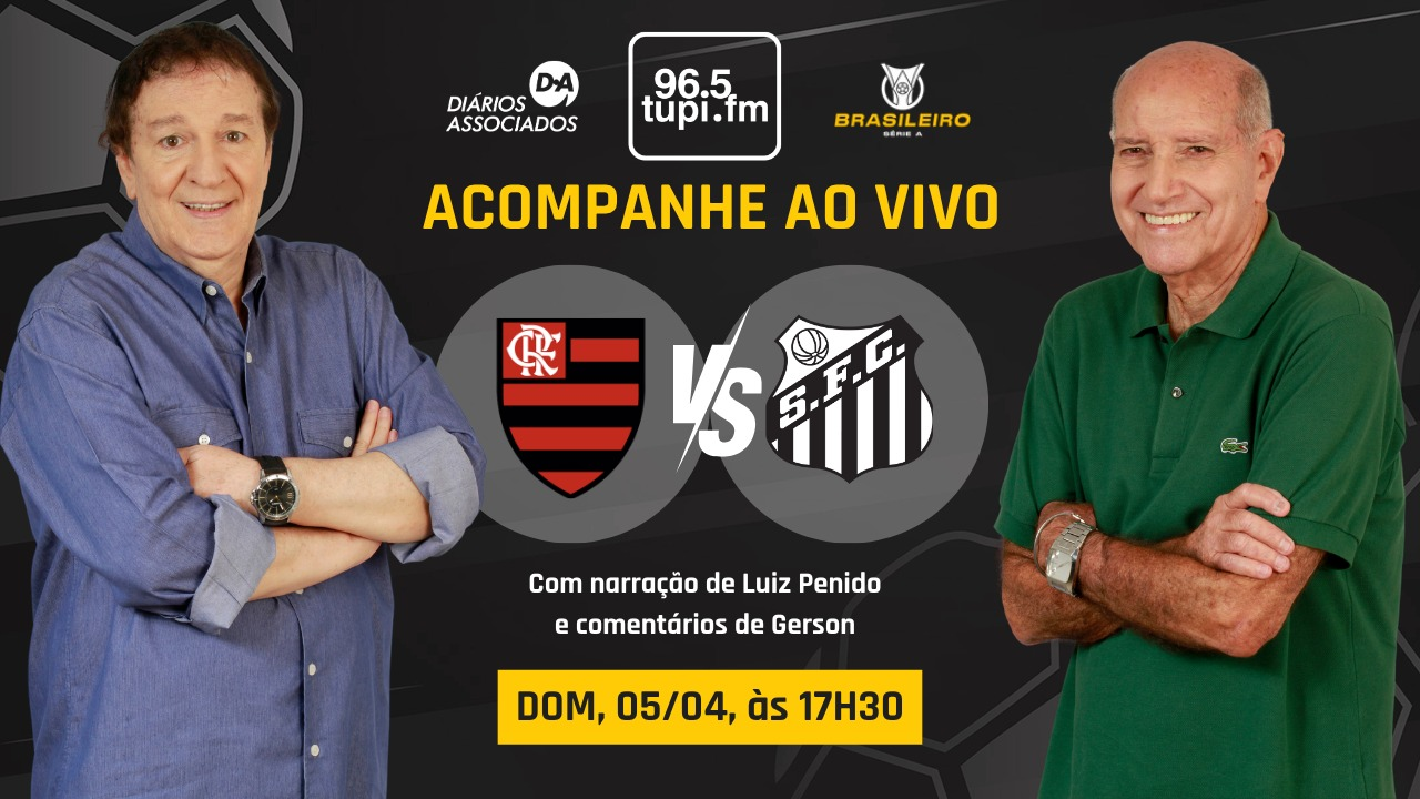 Não perca nenhum detalhe de Flamengo x Santos ao vivo na transmissão completa da Super Rádio Tupi. A jornada esportiva começa às 15h e acompanha todos os lances do confronto direto do Maracanã.