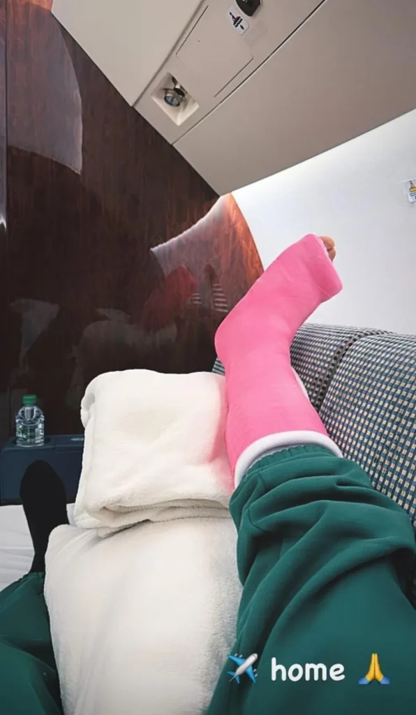 Após cirurgia realizada no tornozelo direito, o atacante Neymar publicou uma foto neste domingo (12) com a perna engessada, voltando para casa. O jogador realizou uma intervenção cirúrgica em Doha, no Catar. Pelo Instagram, ele escreveu: “Casa” com um foto da perna engessada dentro de um avião.