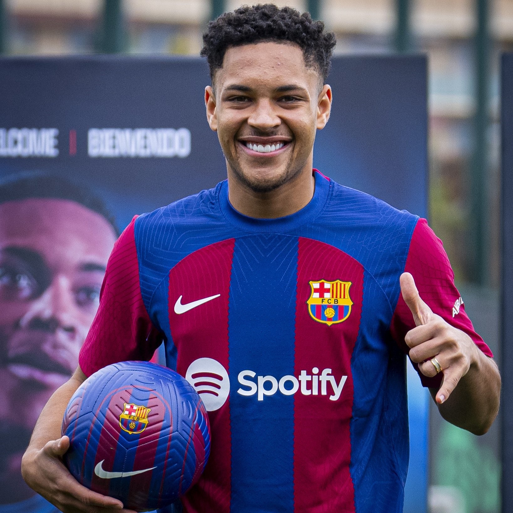 O atacante Vitor Roque foi oficialmente apresentado no Barcelona, nesta sexta-feira (05), no Centro de Treinamento Joan Gamper. Ao lado do vice-presidente Rafa Yuste e do diretor de futebol Deco, o brasileiro tirou fotos e fez a tradicional embaixadinha em campo.
