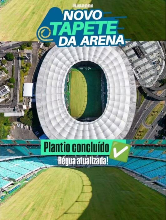 A mudança do gramado começou na última segunda-feira, aproveitando a pausa da Data Fifa. A Fonte Nova confirmou que manteve o tipo Bermuda Celebration, o mesmo utilizado desde 2013, conhecido pela resistência e qualidade técnica. Esse tipo de grama é o mesmo presente em estádios como Maracanã, Mineirão e Arena MRV, o que garante padronização entre os principais palcos do país.