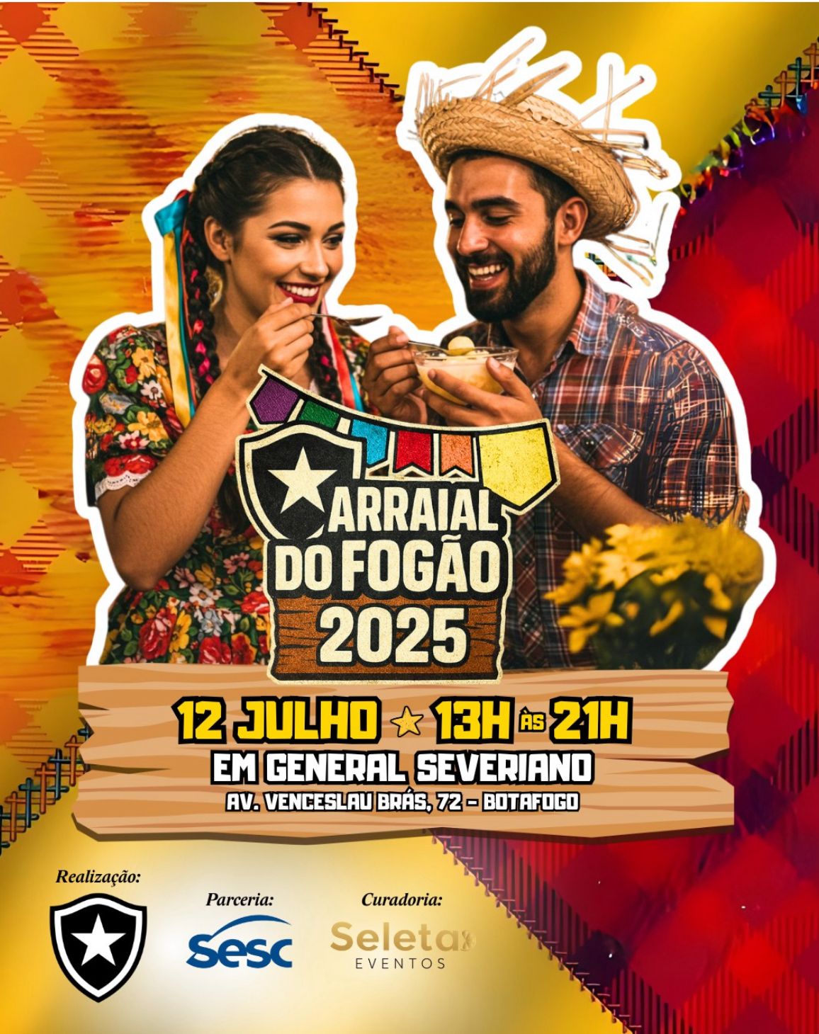 Nesse sábado, dia 12 de julho das 13h às 21h ocorrerá em General Severiano, Av Venceslau Brás 72, em Botafogo o Arraial do Fogão, este ano em parceria com o SESC.