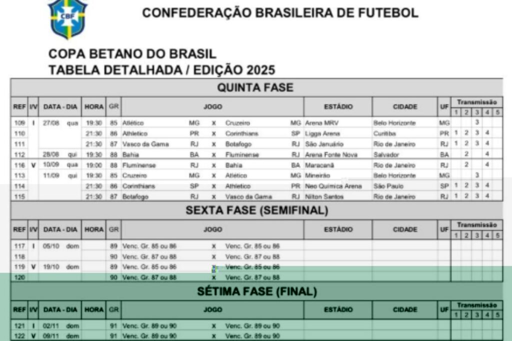 Com a liberação de São Januário, a CBF pôde divulgar, na parte da noite, a tabela detalhada com as datas e horários dos jogos de ida e volta das quartas de final. O primeiro duelo será no dia 27, às 21h30, na casa vascaína.