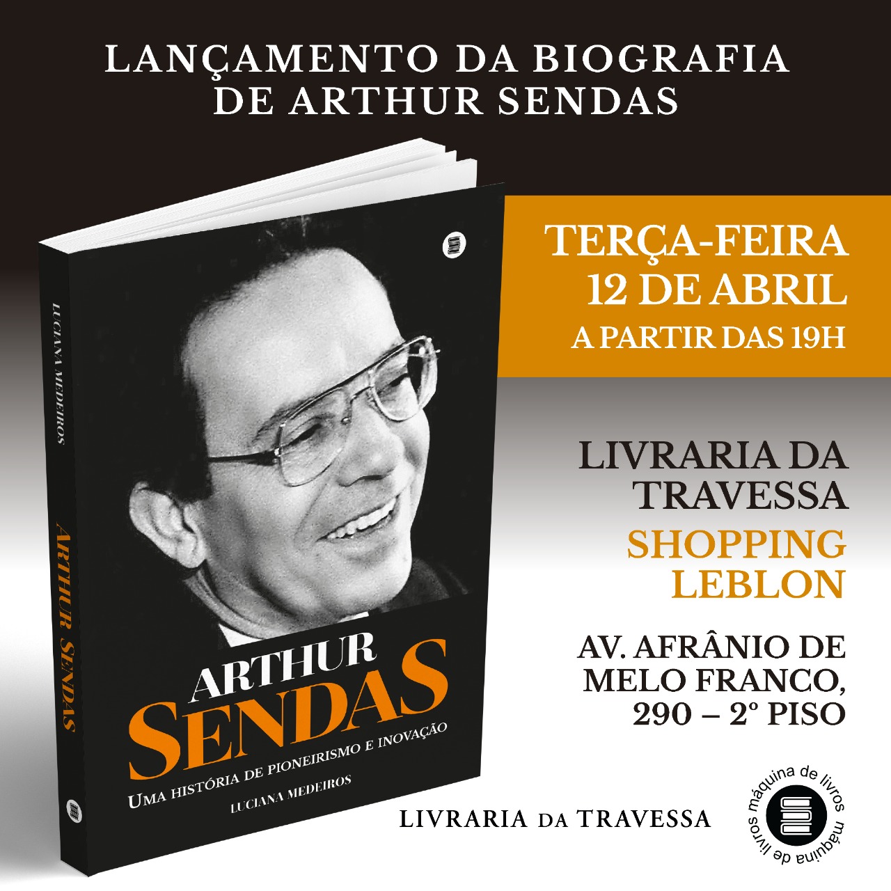 Nesta terça feira (12/04), a partir das 19 horas a autora Luciana Medereiros estará na Livraria da Travessa, no Shopping Leblon, lançando e autografando a biografia de Arthur Sendas, um dos maiores empresários do ramo de supermercados e outros setores varejistas e atacadistas do Rio de Janeiro e do Brasil. Um apaixonado vascaíno.