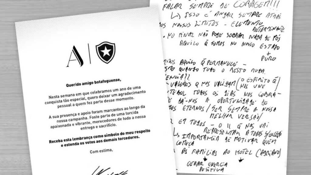 Carta do técnico Artur Jorge à torcida do Botafogo — Foto: Reprodução