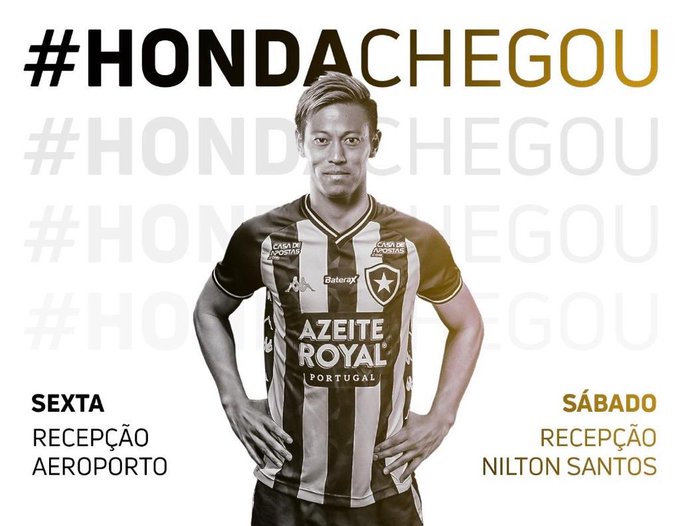 O Botafogo confirmou a chegada do meia Japonês Keisuke Honda para a próxima sexta-feira, às 15h, no aeroporto internacional do Galeão. O clube usou as redes sociais para convocar a torcida para estar presente e recepcionar o principal reforço para 2020. Está sendo montada uma grande apresentação do atleta no próximo sábado no estádio Nilton Santos.