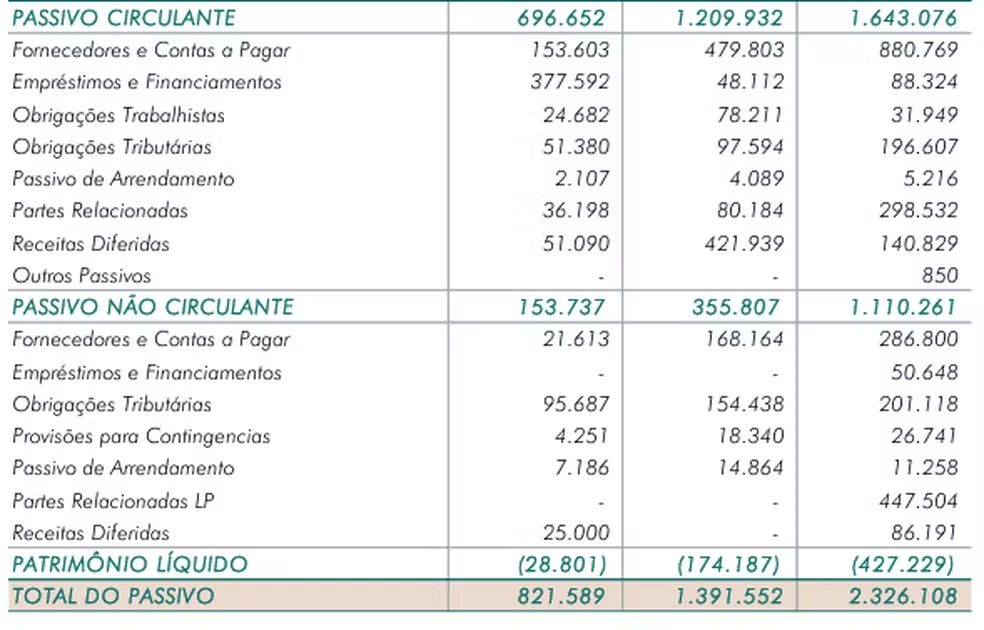 O relatório mostra passivo total de aproximadamente R$ 2,75 bilhões. Dessa forma, o número soma dívidas de curto e longo prazo. O patrimônio líquido negativo chega a R$ 427,2 milhões. Assim, mesmo com a venda de todos os bens, a SAF não conseguiria quitar as obrigações.