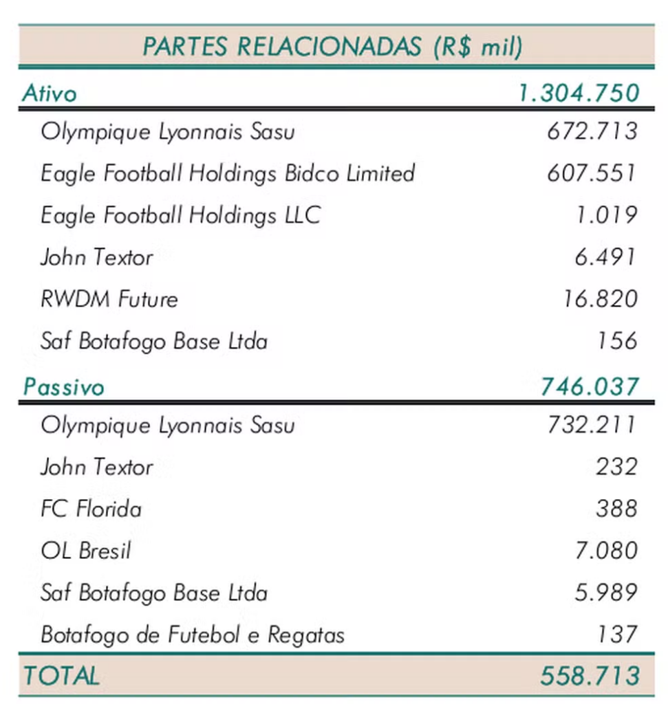 Outro ponto envolve o crédito de R$ 607 milhões a receber da Eagle Bidco. A empresa faz parte da Eagle Football, grupo que controla o Botafogo. Atualmente, a subsidiária está em recuperação judicial.