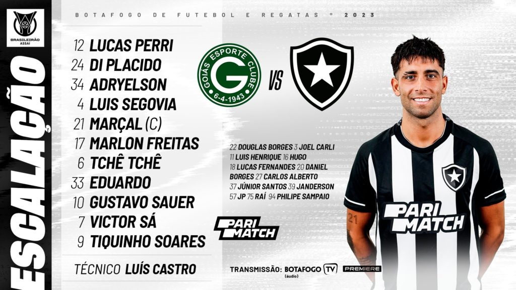 Botafogo escalado para enfrentar o Goiás pelo Campeonato Brasileiro