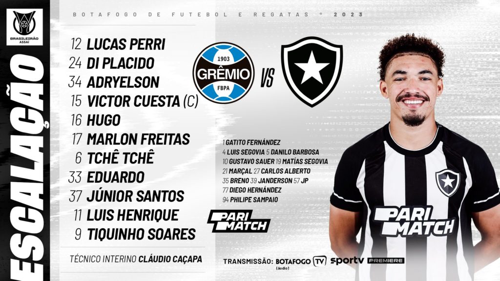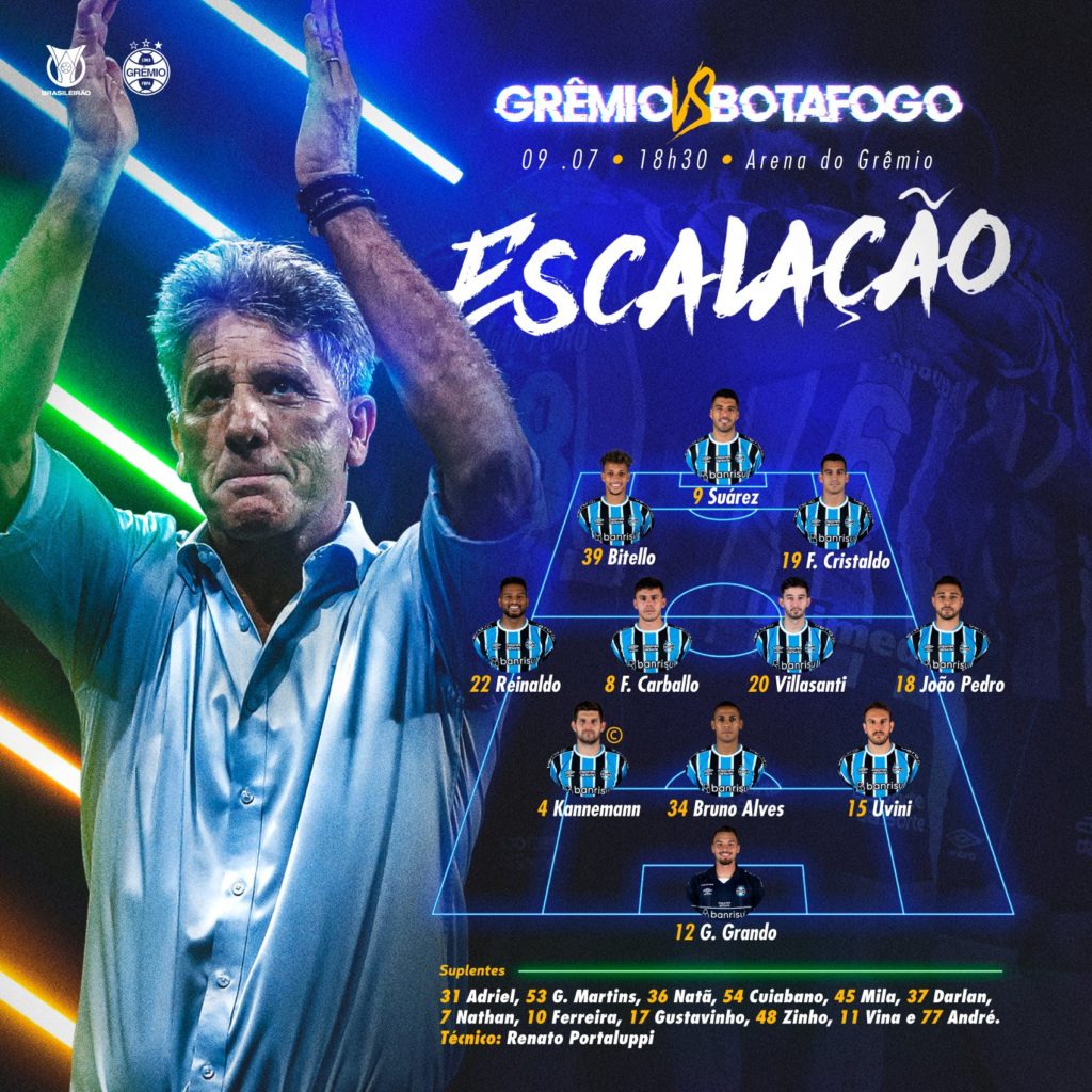 Botafogo está escalado para duelo contra o Grêmio pelo Brasileirão; confira