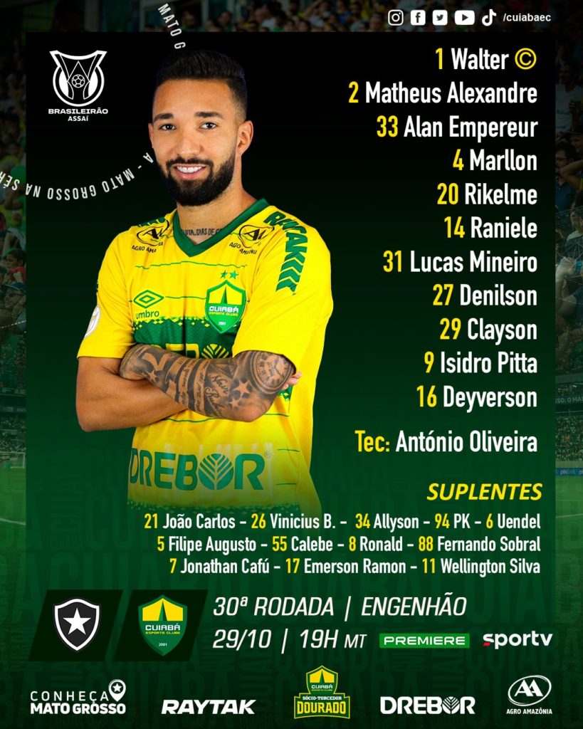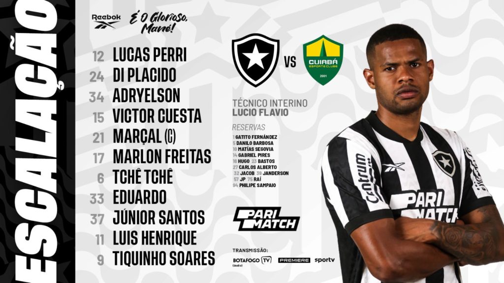 Botafogo está escalado para enfrentar o Cuiabá pelo Brasileirão