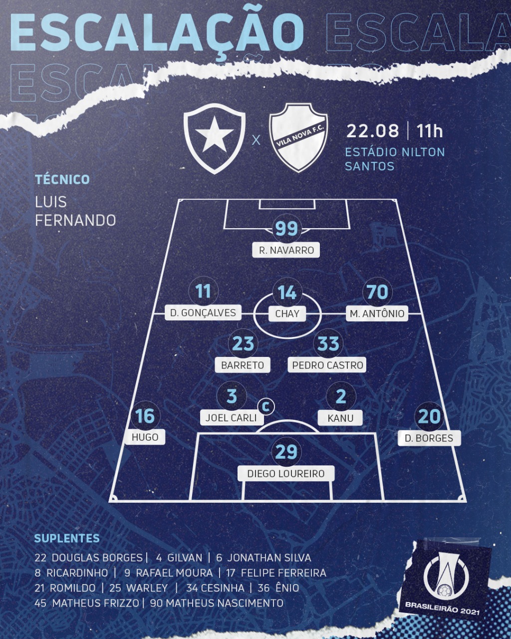 Botafogo está escalado para pegar o Vila Nova pela Série B do Campeonato Brasileiro