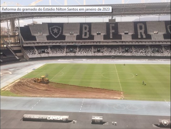 O Botafogo iniciou nesta segunda-feira (16) as obras no gramado do estádio Nilton Santos. Foi iniciada a remoção da grama natural para a implantação da grama sintética. A decisão foi tomada pelo departamento de futebol do clube.