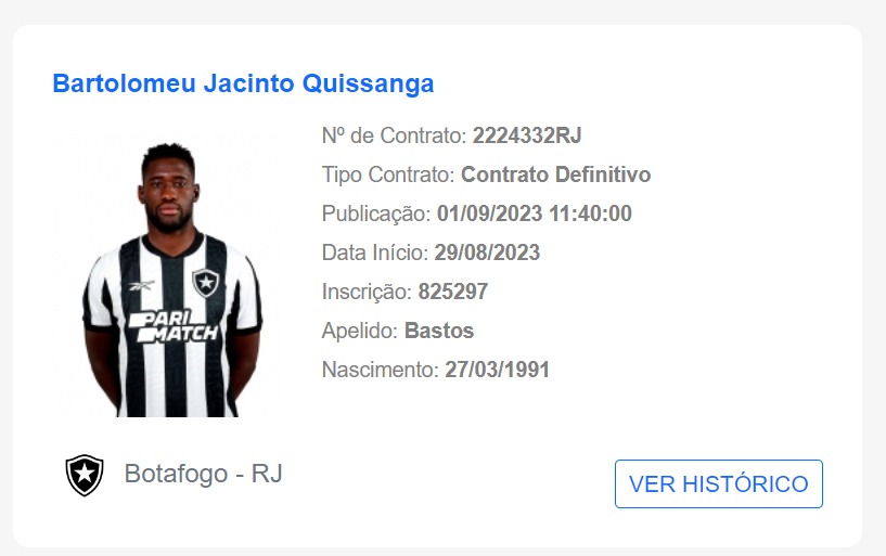 O nome do zagueiro Bastos foi publicado no Boletim Informativo Diário (BID) da CBF, na manhã desta sexta-feira (01). Regularizado, o jogador já pode estrear pelo Botafogo. No entanto, a comissão técnica não deve utilizá-lo no jogo diante do Flamengo, neste sábado (02), pelo Brasileirão.