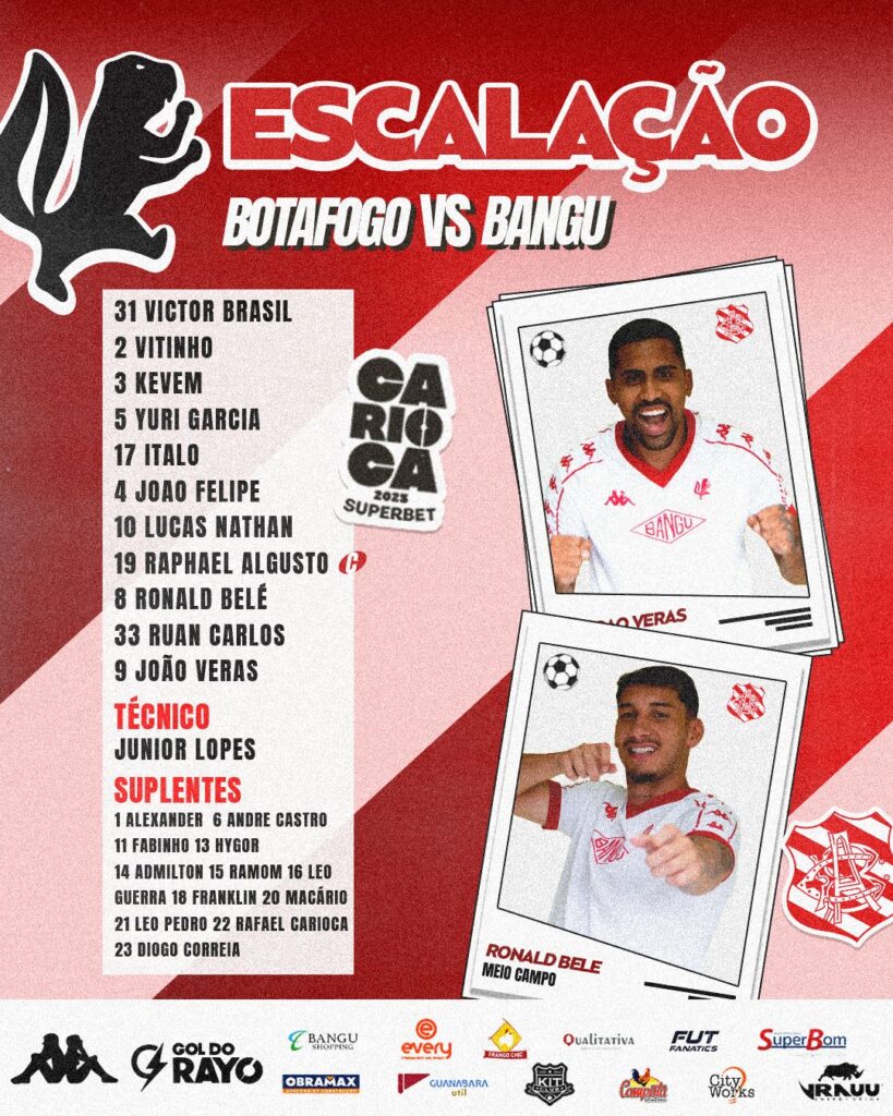 Neste domingo (26), o Botafogo entra em campo com o time reserva pela última vez no Carioca para enfrentar o Bangu pela última rodada da competição. O Bangu terá a estreia do técnico Junior Lopes, que fez algumas alterações na equipe titular para tentar tirar a equipe da lanterna do torneio.