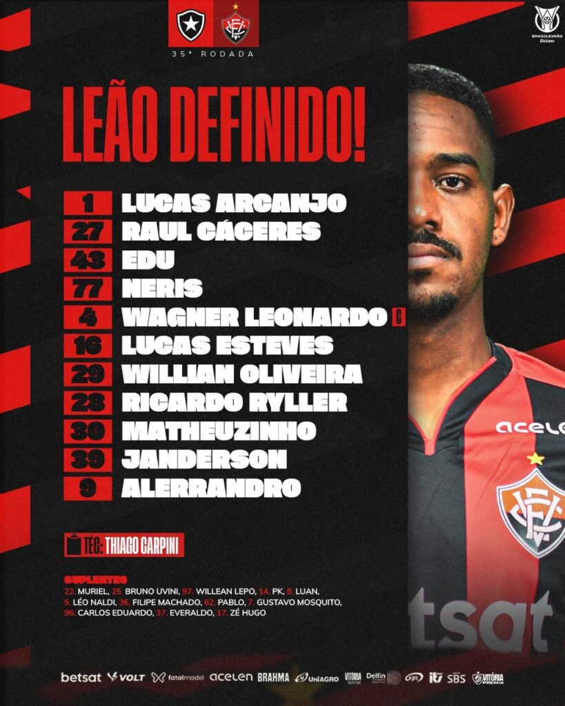 Botafogo está escalado para jogo contra o Vitória