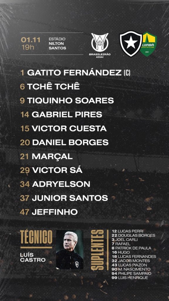 Foco na Liberta! Botafogo está escalado para enfrentar o Cuiabá no Nilton Santos