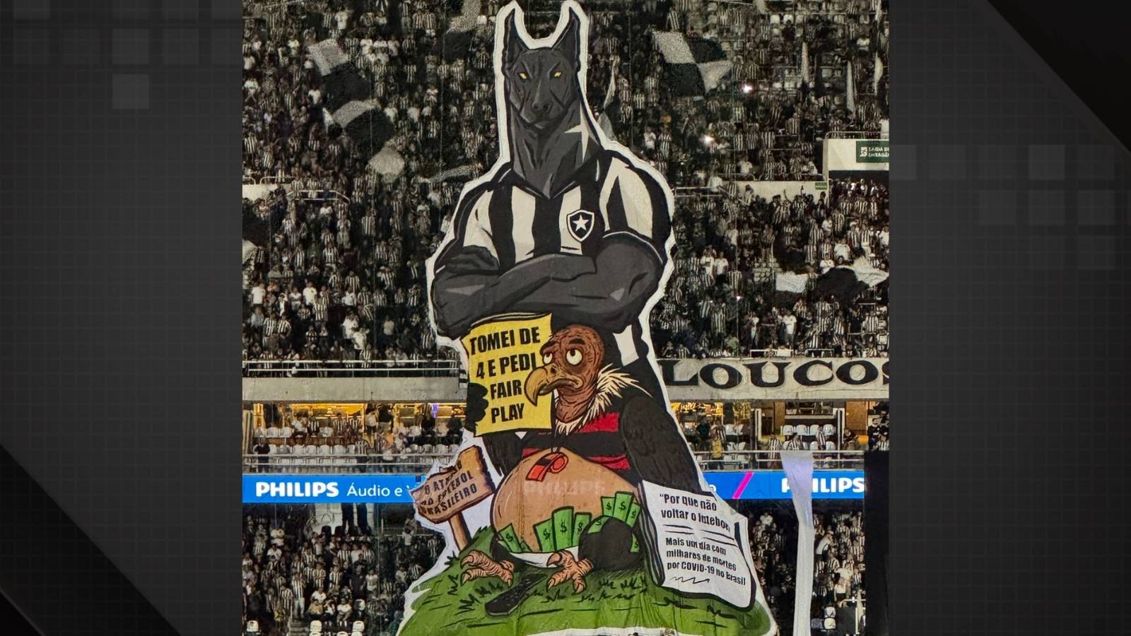 Botafogo exibe mosaico com provocação ao Flamengo e referência à pandemia