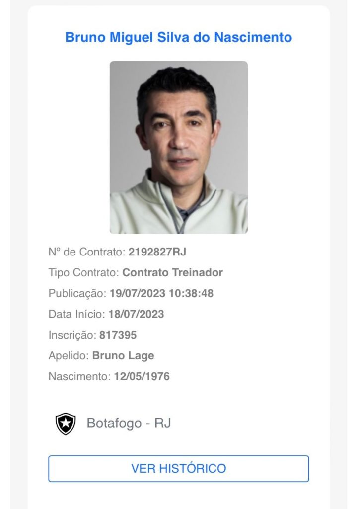 O técnico Bruno Lage foi regularizado junto à CBF e Conmebol e pode estrear no comando técnico do Botafogo na partida desta quarta-feira (19) contra o Patronato, às 19h (de Brasília), no Nilton Santos, pelos playoffs da Sul-Americana. O nome dele foi publicado no Boletim Informativo Diário (BID) da CBF na manhã desta quarta.