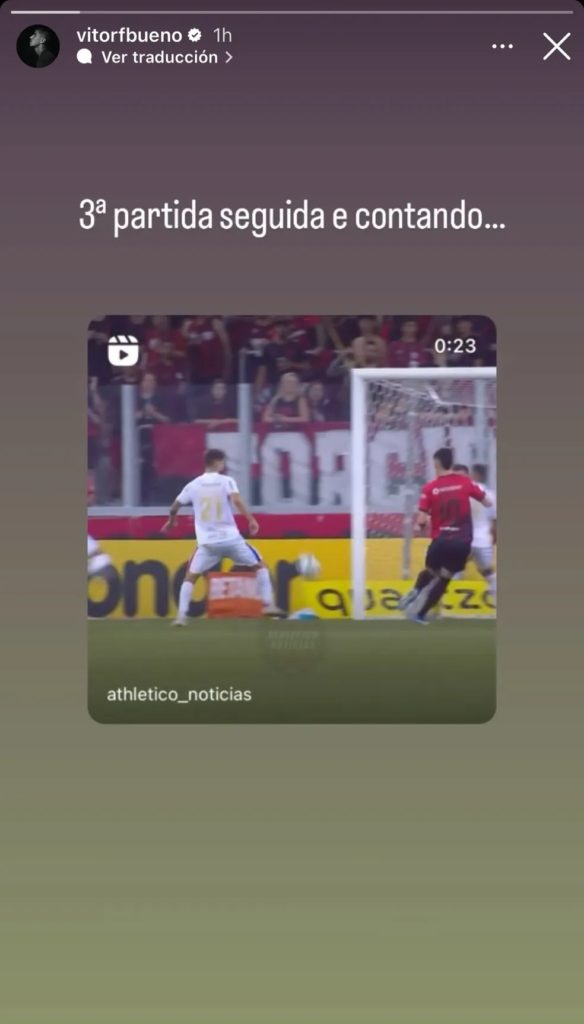 “Terceiro jogo seguido e contando..” – apontou Vitor Bueno.