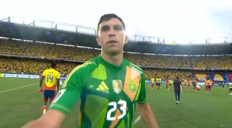 A Colômbia venceu a Argentina na última terça-feira (10) por 2 a 1 em partida válida pelas Eliminatórias Sul-Americanas. Além da derrota, o goleiro argentino Emliano Dibu Martínez, roubou a cena ao se irritar com a gração após a partida.