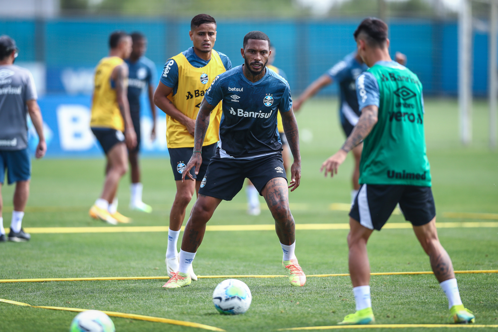 No segundo momento, os goleiros Vanderlei, Paulo Victor, Julio César e Gabriel Chapecó se uniram aos atletas de linha para um treinamento de campo reduzido, com permissão de poucos toques na bola e conclusões a gol. O técnico Renato Portaluppi acompanhou de perto. A definição do time fica para a sexta-feira, quando a equipe faz a última sessão antes do jogo.
