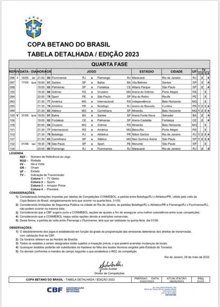 Confira os detalhes dos confrontos das oitavas de final da Copa do Brasil: