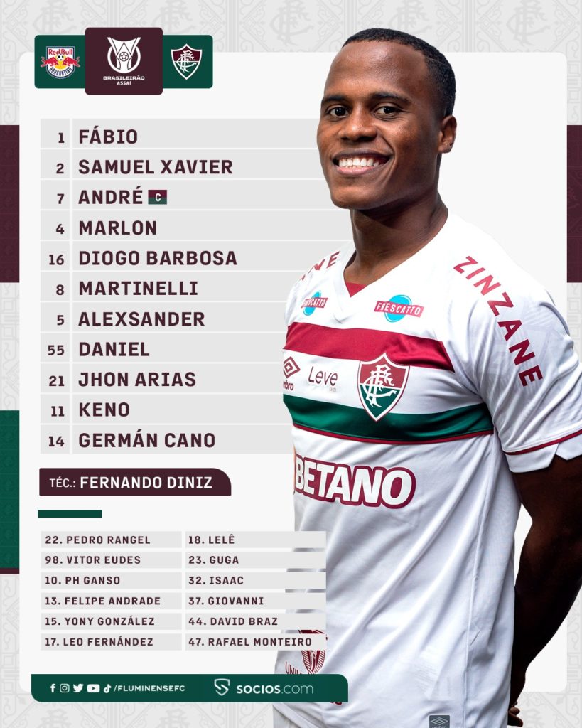 Com André na zaga, o Fluminense está escalado para enfrentar o Bragantino pelo Brasileirão