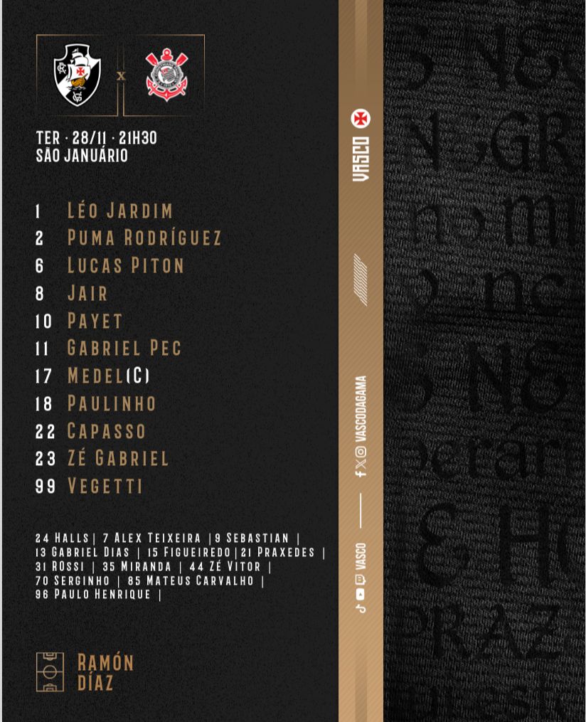 Com Capasso e Payet, Vasco está escalado para pegar o Corinthians pelo Campeonato Brasileiro - Super Rádio Tupi