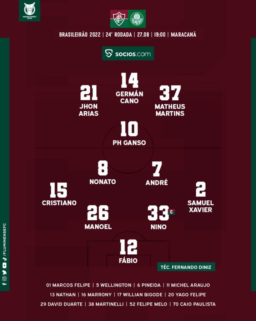 A assessoria de imprensa do Fluminense informou que, apesar da divulgação da escalação com Caio Paulistas na lateral-esquerda, houve um erro na geração da arte e Cris Silva será o titular da posição, compondo a defesa tricolor para o jogo contra o Palmeiras.