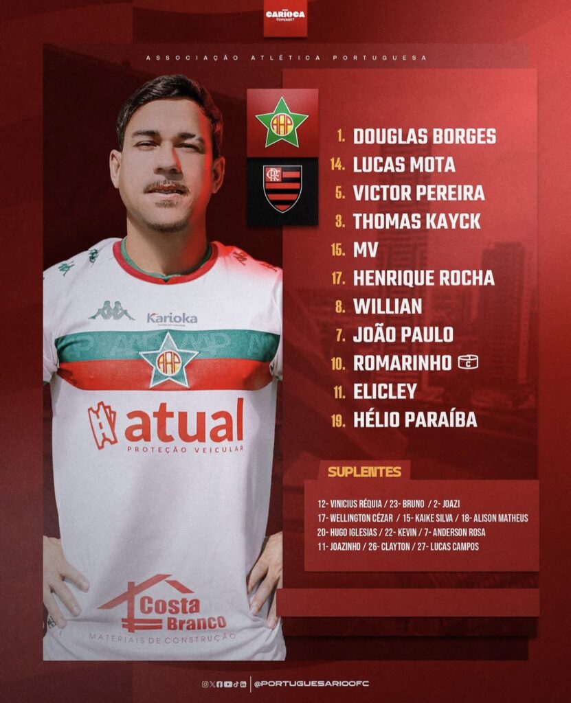 Nesta quarta-feira (5), o Flamengo enfrenta a Portuguesa, às 19h, pela 8ª rodada do Campeonato Carioca, no Parque do Sabiá. O técnico Filipe Luís vai poupar os titulares que venceram o Botafogo na Supercopa do Brasil e promoverá a estreia de Danilo entre os 11.