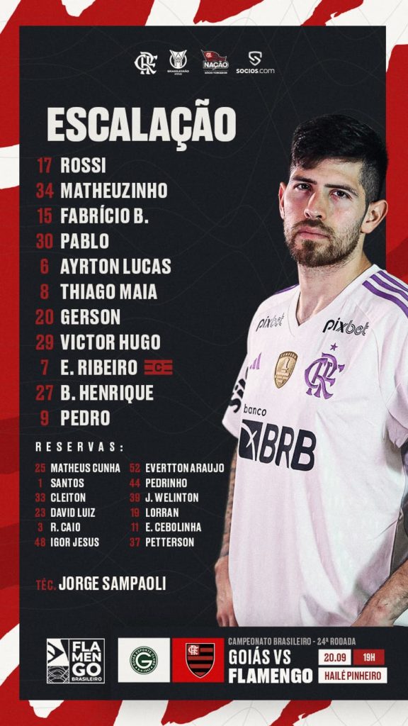 Com desfalques, Flamengo está escalado para enfrentar o Goiás
