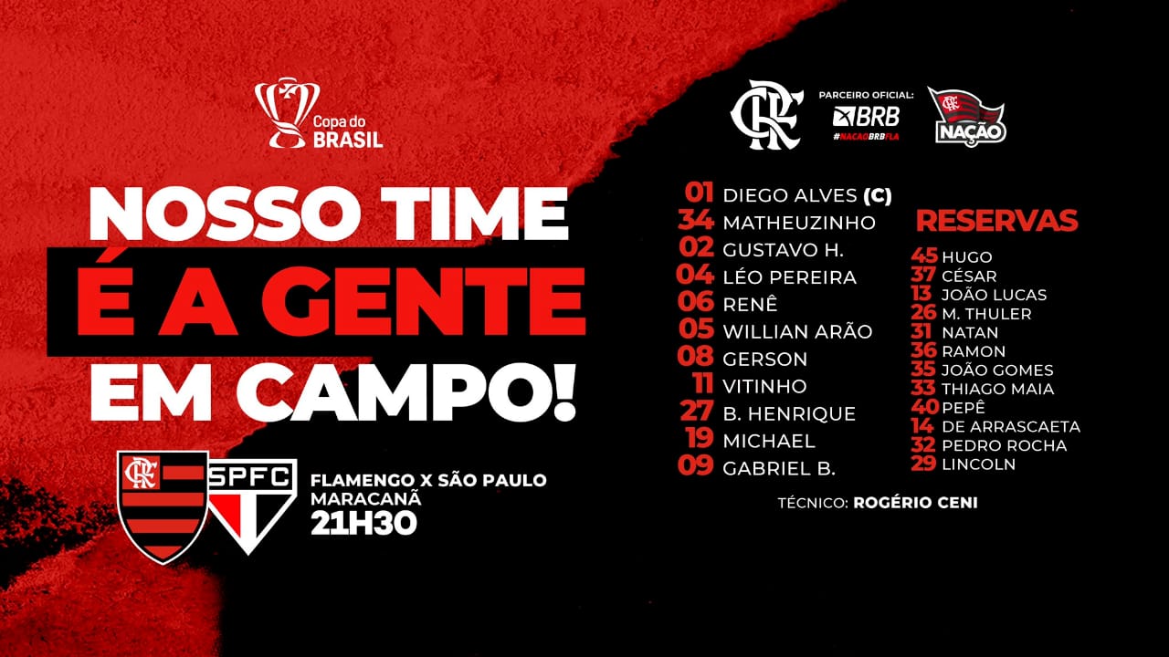 Com Diego Alves de volta ao time titular, Rogério Ceni escala o Flamengo para encarar o São Paulo