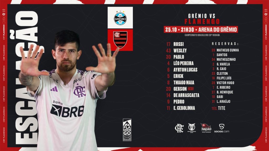 Com duas novidades, Flamengo está definido para enfrentar o Grêmio - Super Rádio Tupi